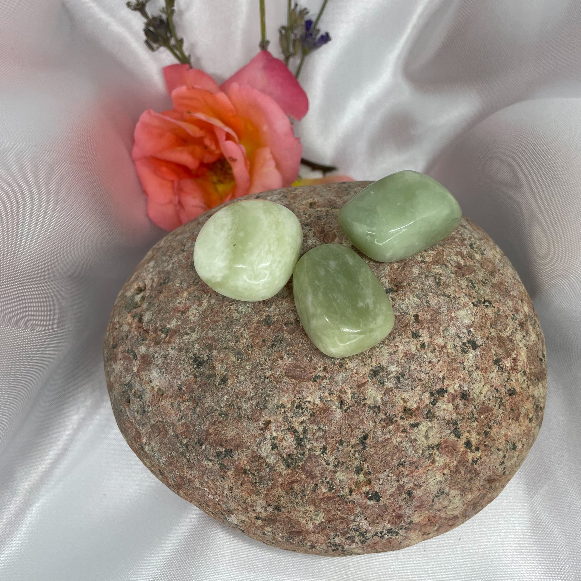 Rechargement : au soleil, à la pleine lune (toute la nuit) ou sur un amas de quartz 1 à 2h. Le jade étant très résistant, il nécessite rarement une purification.